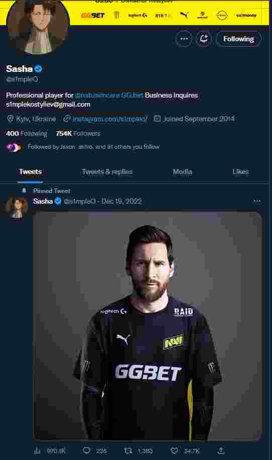 s1mple是真的喜欢梅老板,他至今还把下图置顶在他的推特首页。