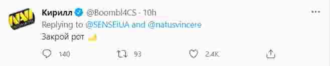 昨日NaVi对阵Akuma的比赛因为上次RMR赛事的前因而颇受瞩目。比赛刚刚开始两分钟,SENSEi就在推特上发了一张游戏内截图,并称: