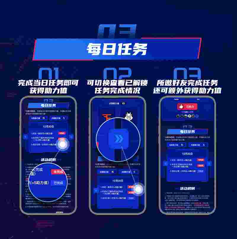 除上述两种方式,自12月19日起,大家还能够通过每日任务获取助力值,邀请好友完成任务还将获得额外助力值。