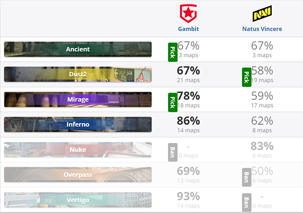 NaVi 3-2 Gambit( Ancient 7–16;Dust2 16–9;Mirage 16–11;Inferno 16-13 )