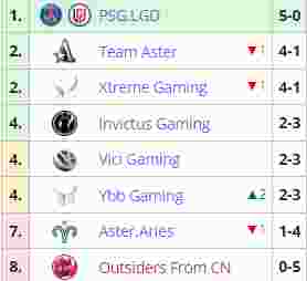 本场比赛过后,Ybb的战绩为2胜3负,和同分的iG和VG并列第四,而Aster的战绩是4胜1负,和同分的XG并列第二。