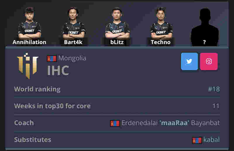 目前HLTV上IHC阵容只剩下四人,不知谁将替代sk0R的位置。
