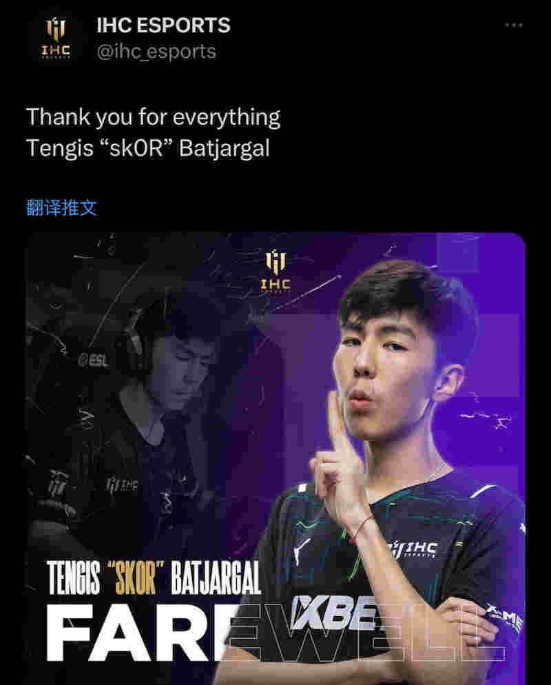 IHC的消息。目前IHC并未对于sk0R离队作出任何解释。