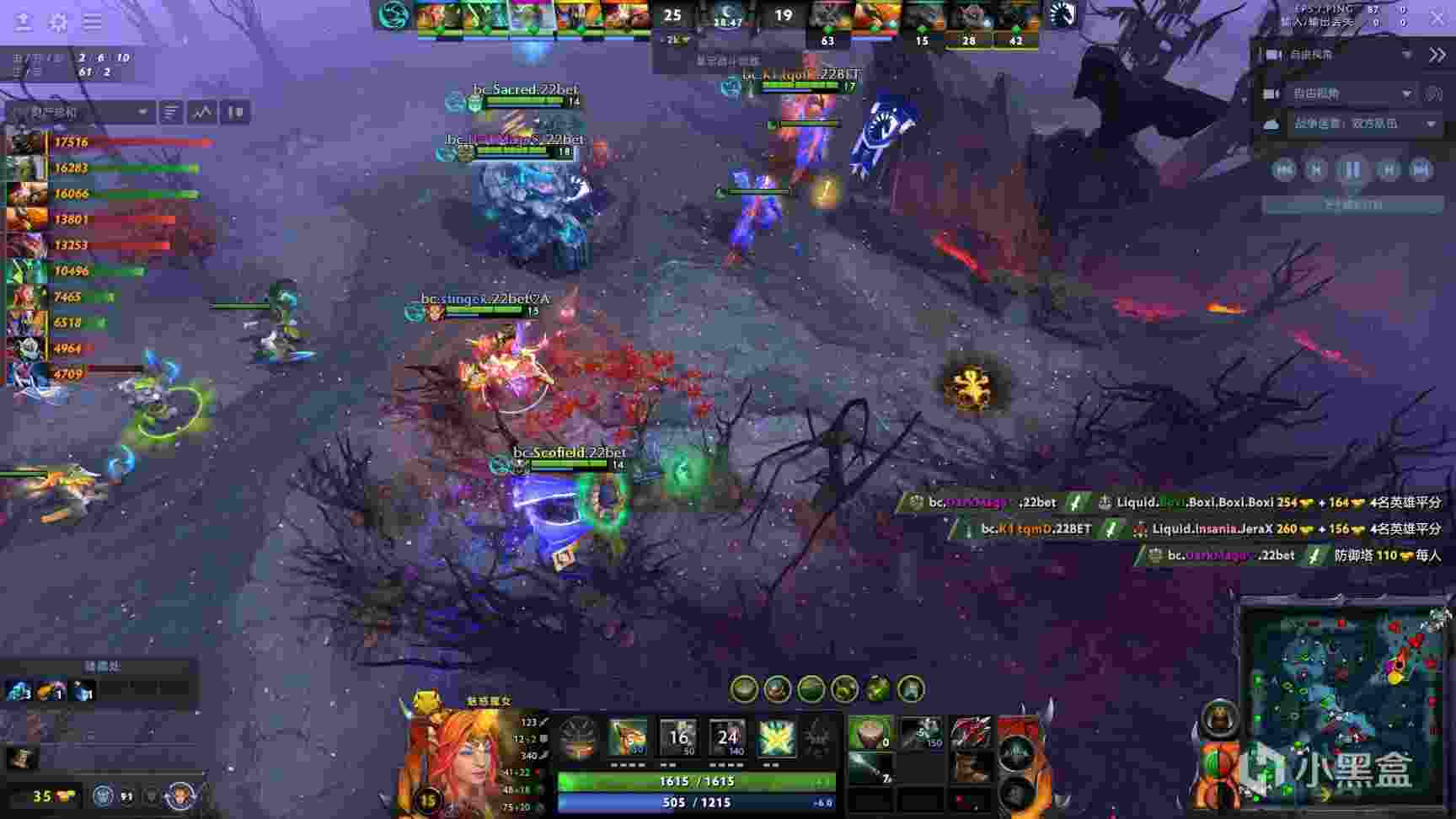 21分钟,凤凰先阵亡的情况下bc见Liquid的bkb都交了,便选择开雾,然而拍拍熊即使顶出bkb也被影魔溜,在bkb和大招期间仅仅击杀了小精灵,bc不敌Liquid再被打4人团灭。