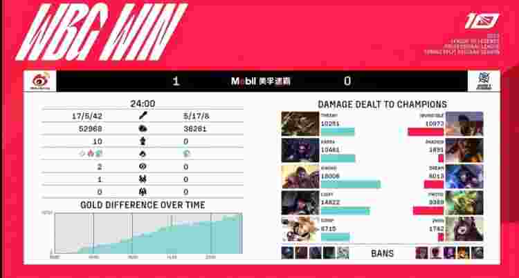 2023,LPL春季赛常规赛第九周第六日,WBG战队做客深圳挑战主队NIP战队,双方的实力差距非常悬殊,WBG连续两局都在对线期就取得巨大优势,快刀斩乱麻迅速2-0击败了NIP。