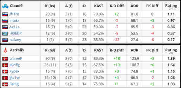 Cloud9的nafany在北京时间昨晚的一场IEM科隆小组赛的赛事中发挥不佳,在这场关系到淘汰赛名额的关键赛事中,nafany在Mirage只打出了0.17的个人Rating,也是个人职业生涯发挥最差的单场比赛。