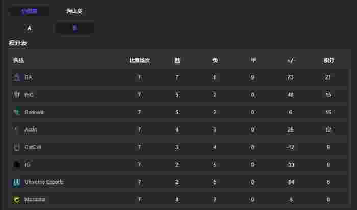 A组晋级淘汰赛的队伍分别是LVG、Clutch、Wings Up、NKT;B组晋级淘汰赛的队伍分别是RA、IHC、Renewal、Aravt;遗憾的是目前小组赛打完,来自我国的队伍CatEvil以及IG被淘汰出局。