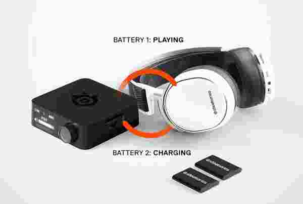为了帮助玩家彻底摆脱束缚,尽享无线游戏音频带来的乐趣,Arctis Pro Wireless特别采用了双模无线连接方式,玩家可同时使用2.4G和蓝牙连接,一边游戏,一边Discord聊天,不会错过每一个重要信息。此外,它还采用了Siberia 800和Siberia840上的快速更换双电池系统,无线发射底座同时提供电池的充电功能,当耳机中的电池没电,玩家可迅速取出发射器中充好电的电池进行更换,每一块电池续航时间可达10小时,双电循环,续航无限。