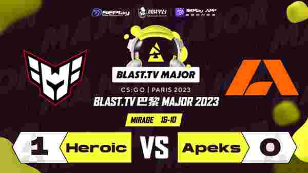 1-0组两支欧洲队伍相遇,地图来到Mirage,手枪局TeSeS极限1v1拆包为Heroic先取优势,但很快Apeks还了一个刚枪翻盘。2-5落后之后Heroic逐渐找到节奏,TeSeS多次拿下多杀为Heroic半场带来9-6的领先。来到下半场,Heroic还给对手一个刚枪翻盘。随后比赛就再次进入Heroic节奏,稳健的控图让他们轻松16-10拿下比赛。