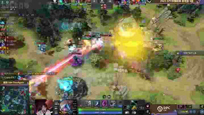 23分钟IG带盾推进,XG下路主动开雾进攻美杜莎,炸弹人赶来自爆五人,但凤凰变出大招护住阵型,双方队伍靠着极限拉扯,技能全交但只巫妖一人阵亡。