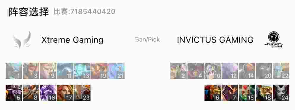 迎来变体精灵强势期的IG高歌猛击,凭借孽主二技能对娜迦海妖的克制,和伐木机稳固的前排,成型的变体精灵所向披靡,团战频频取胜,40分钟带盾直取XG高地,XG交出灰烬之灵和辅助生命勉强击退IG,但XG中路告破,对变体精灵依然难以处理。IG只能靠着娜迦海妖的幻象和灰烬之灵的机动性干扰IG兵线。届时人头比来到16-21.
