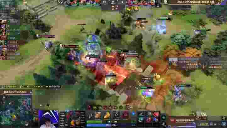13分钟拥有线上优势的IG主动出击天辉三角区,发现自身阵容缺乏追人能力,还是决定继续保护美杜莎发育为主,双方前期未爆发大规模战争。