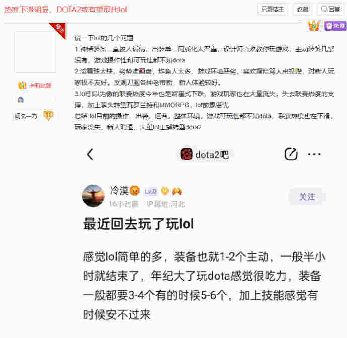 大意为LOL热度下滑明显,DOTA2或有望取代LOL