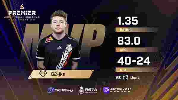 BLAST Premier 全球总决赛 2022,来到了G2与Liquid的最终决赛!图一上,G2开局顺利,随后Liquid虽时有发挥,但G2全员在线,在上半场击溃了Liquid,下半场G2也没有给Liquid机会,直接拿下了图一的胜利。图二上手枪局首先由G2拿下,随后Liquid也展开反击,但G2众人愈战愈勇,jks等队员手感火热,直接将Liquid的进攻一次次击溃,反观Liquid众人彻底熄火,一直被G2掌握比赛节奏,虽然Liquid最后有所发挥,但上半场劣势过于巨大,G2当仁不让的拿下了本次比赛的胜利!本次比赛的MVP选手jks也是实至名归,本次比赛他的手感极为火热,多次凭借着极致的个人能力打出了精彩的突破,在防守端的防守也滴水不露,他绝对是本次比赛帮助G2获得冠军的最大功臣。