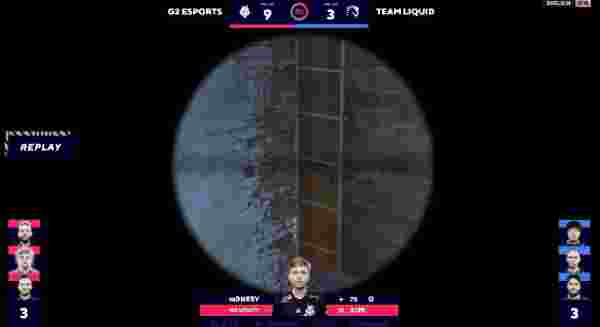 第八回合,mONESY再现VAC操作,在秒杀一人后再次穿烟秒杀一人,直接将Liquid的进攻拒之门外,Liquid开始陷入劣势,经济状态十分不乐观。第十回合,Liquid在2V3的情况下攻入A包点,最后面对1V1残局,呼神大心脏获取胜利,G2的队标也开始不断燃起熊熊烈火!第十四回合,EliGE在进攻端连杀四人,终于成功攻入B包点,同时打断了G2的连胜,Liquid也开始逐渐找回自己的节奏,吹起了反攻的号角。上半场最后一分,G2在B区松懈,Liquid成功拿下上半场的最后一分。上半场最后一分也是定格在了9:6。