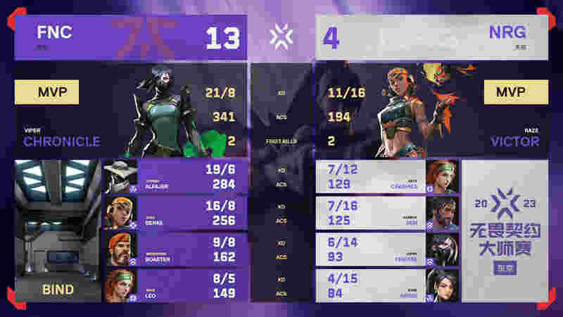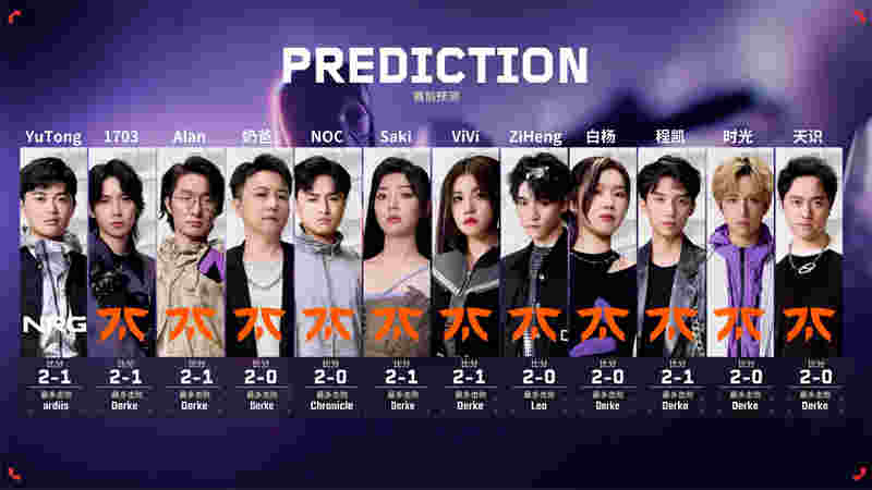无畏契约东京大师赛双败淘汰赛继续进行,由季前邀请赛冠军、VCT欧洲亚军FNC,对阵VCT美洲亚军NRG,两支队伍在纸面实力上FNC更胜一筹。所以在赛前预测环节,几乎所有解说都一直看好FNC。
