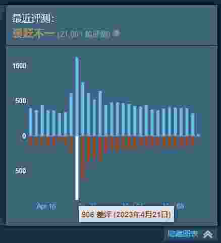 从评价趋势来看,7.33版本上线当日4月21号,游戏增加了约2034个评价,其中好评1128个,差评906个,好评率约为55%,其中有部分用户的差评理由为7.33发布后游戏变得和英雄联盟类似,不喜欢这次创新性的游戏更新。
