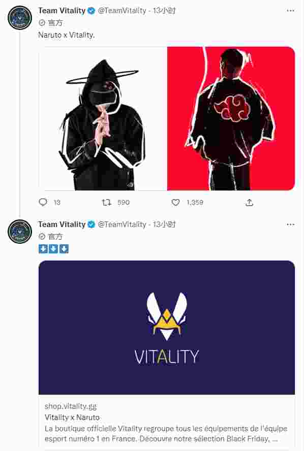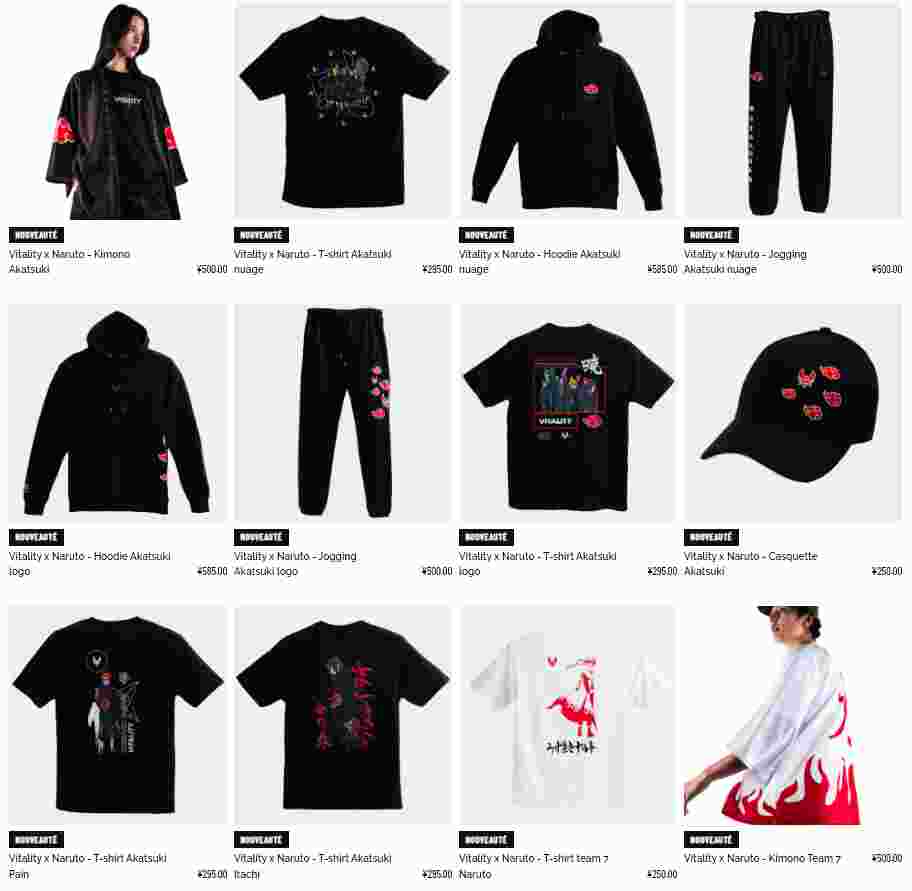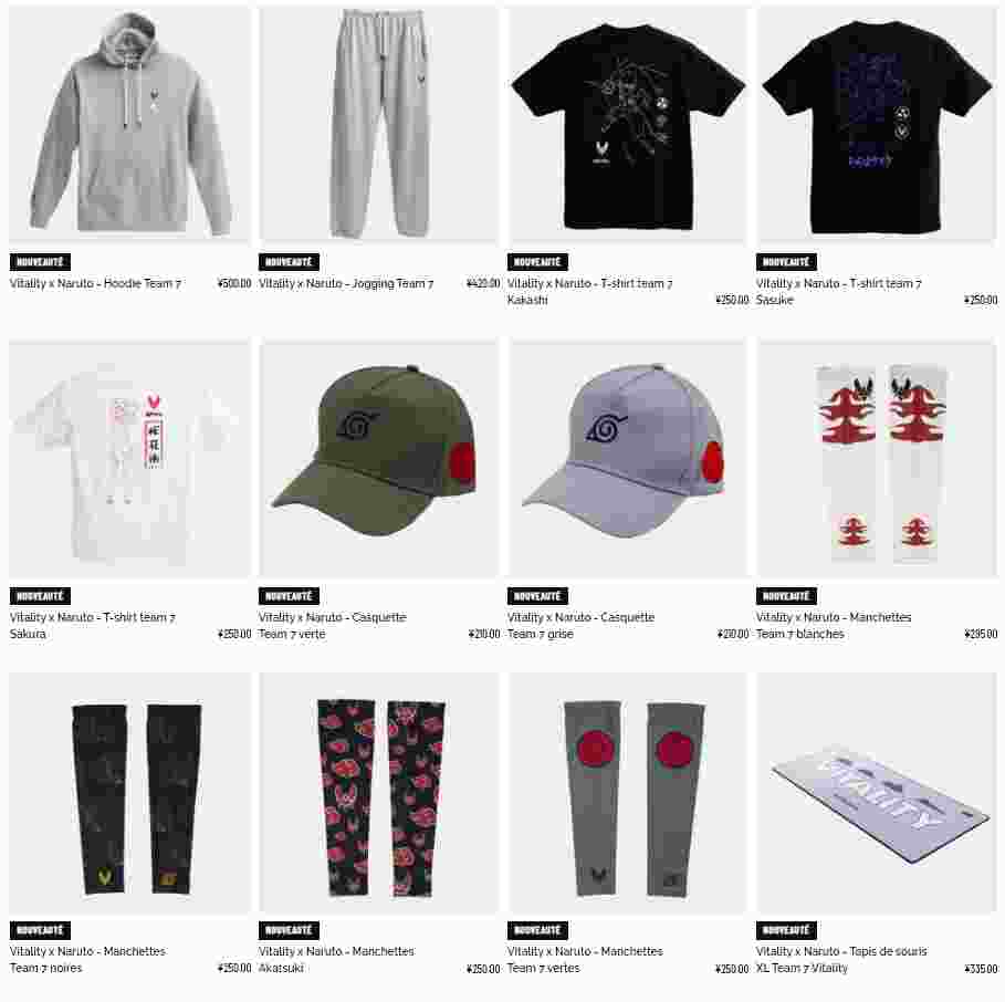 Vitality的官推正式推出他们和Naruto联名的服饰外设,其中包括T恤、卫衣、帽子、袖套、长裤、鼠标垫等单品,各单品的价格在¥210-¥585不等。