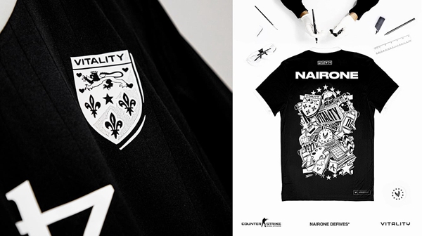 Vitality与法国艺术家Nyrone Defives合作推出限量版T恤,将作为旗下CSGO阵容的队服使用。限量外售共500件,单件价格为60欧元(约合422人民币)。