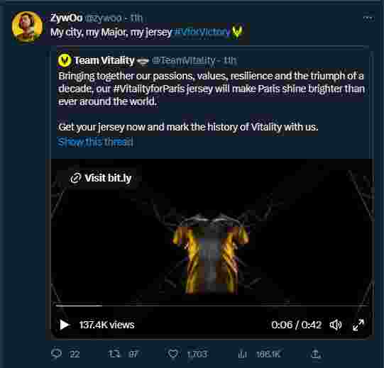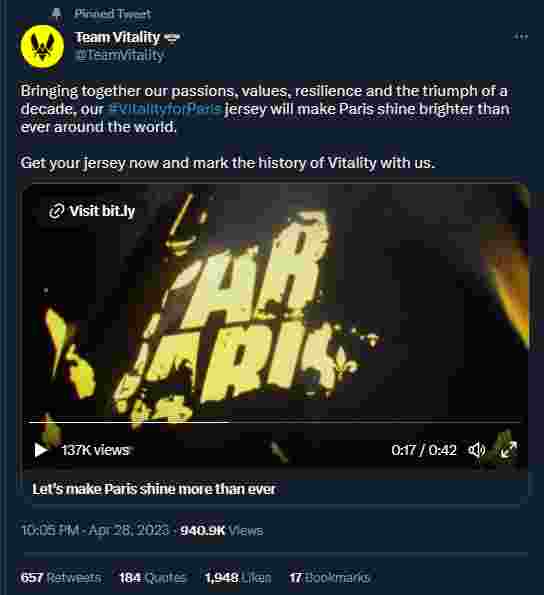 昨天晚间,为庆祝即将到来的BLAST.tv巴黎Major,主场作战的Vitality俱乐部发布了最新的巴黎Major战袍。