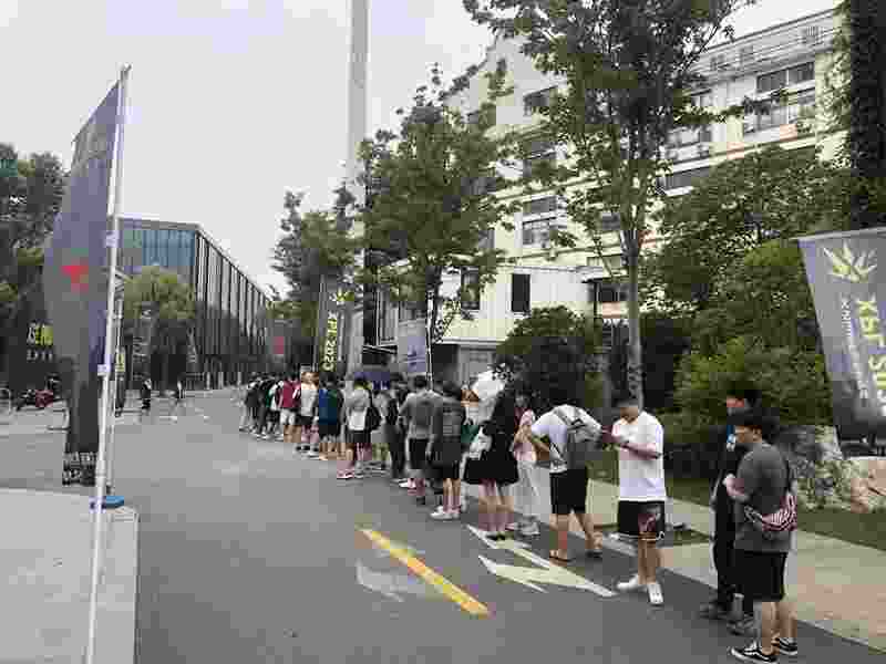 走在园区的路上,早已有人静候在比赛场馆前,长龙初显。他们满怀期待,知道早早候在此处有很大概率得到“回报”。这里的“回报”自然是与偶像零距离接触的机会。随着比赛时间的迫近,主办方开启了入场,各位选手陆续到达,场馆内外逐渐分化成了大圈、小圈。