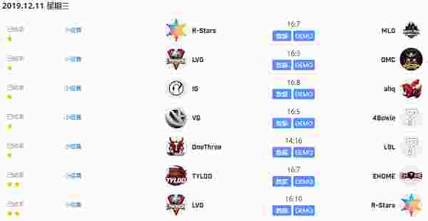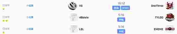 另一场焦点战役IG对阵R-Stars比赛中,IG战队作为CT优势方上半场只拿到了3分。随后换为进攻方就更加束手无策,最终4-16败与R-Stars。L9L战队和OneThree战队有着似曾相识的遭遇,被TYLOO轻松碾压。另一边OneThree以16-4轻松赢下4Bowie。不过好在4Bowie之前拿下了与L9L的比赛,携手OneThree一起挺进败者组。DMC在Mirage这张地图上10-16被MLD带走无缘淘汰赛。EHOME被OneThree16-9大比分带走后,情况不容乐观,并在最后一场和VG的加时大战中以24-28告负。而VG这边除输给TYLOO之外四战四胜,与TYLOO携手共进淘汰赛胜者组。