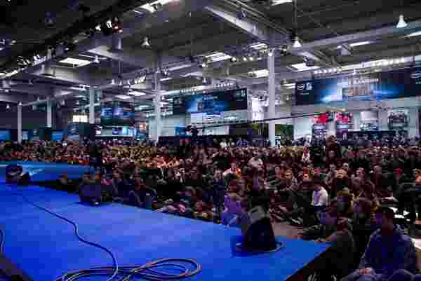 IEM5 World Championship的现场,尽管如今看起来十分简陋,也难掩玩家们的热情