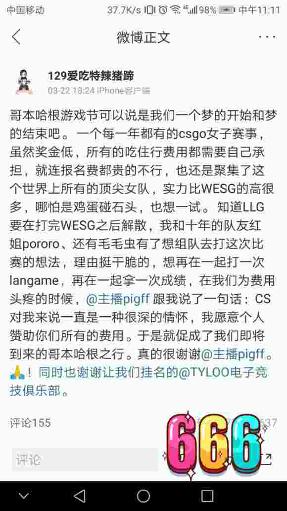 TYLOO女队员129转述主播PIGFF和CSGO的小故事