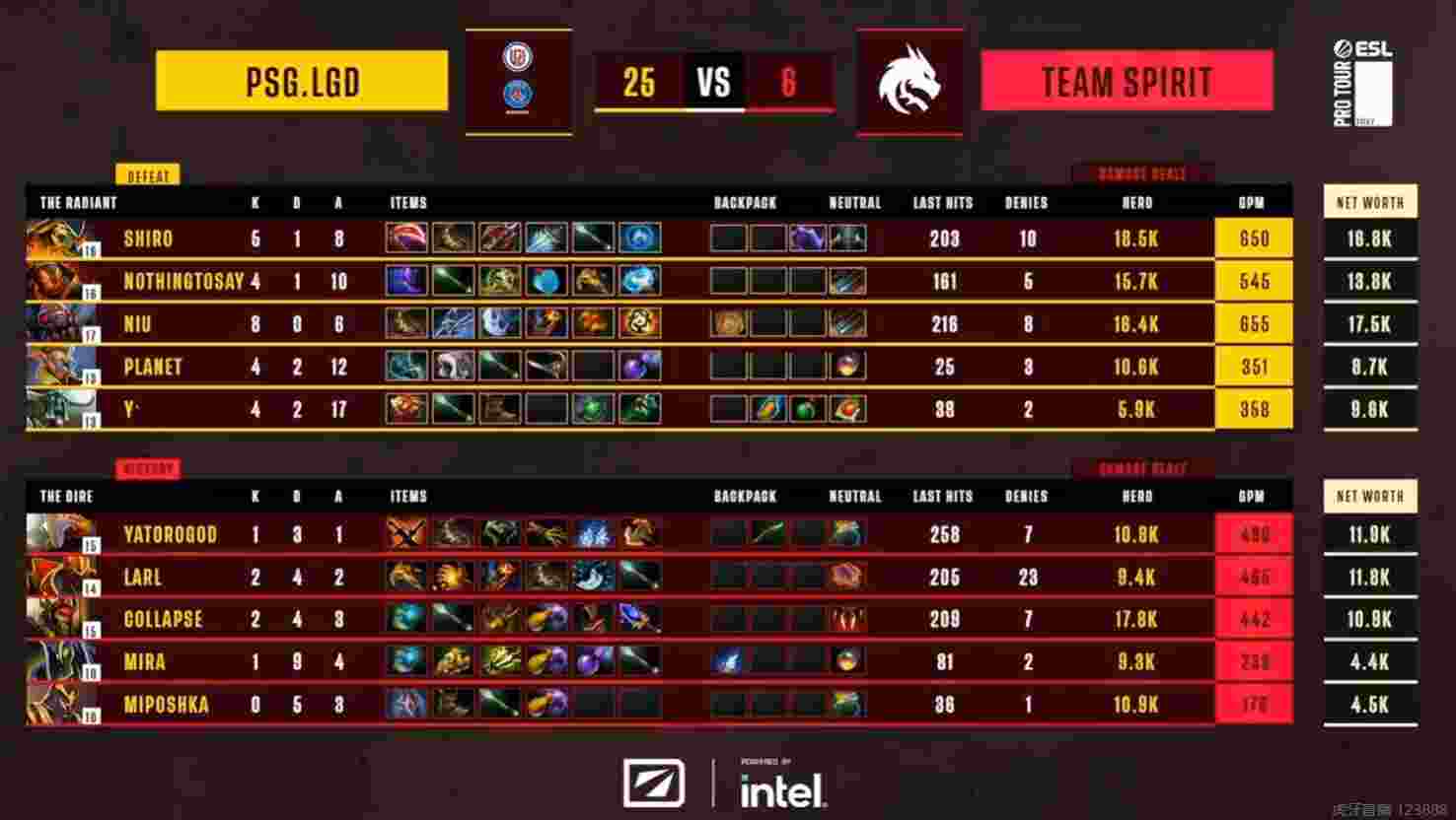 LGD凭借着对版本的充分理解,占到了大便宜。这个版本是一个对线为王的版本,LGD两场都选出了线优阵容,通过对线期取得的巨大优势让Spirit中期无法招架,速度结束比赛。