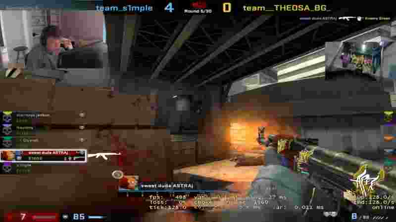 比赛中,在ASTRA赢下1V2的残局后,S1mple开玩笑地说她们打的比主队还要强。