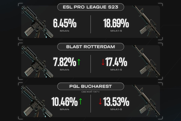 M4A4使用频率在近几届赛事中持续增长,逐渐接近M4A1