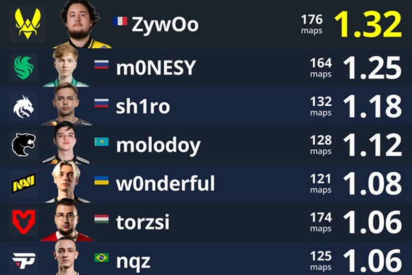 donk遥遥领先!2025年选手Rating榜TOP10